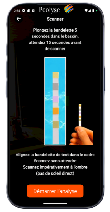 Scannez une bandelette POOLYSE à l’aide de votre smartphone et accédez immédiatement à une analyse détaillée de votre eau.